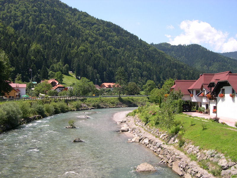 Traumhafte Flusskurve bei Ljubno mit sehenswerter Landschaft